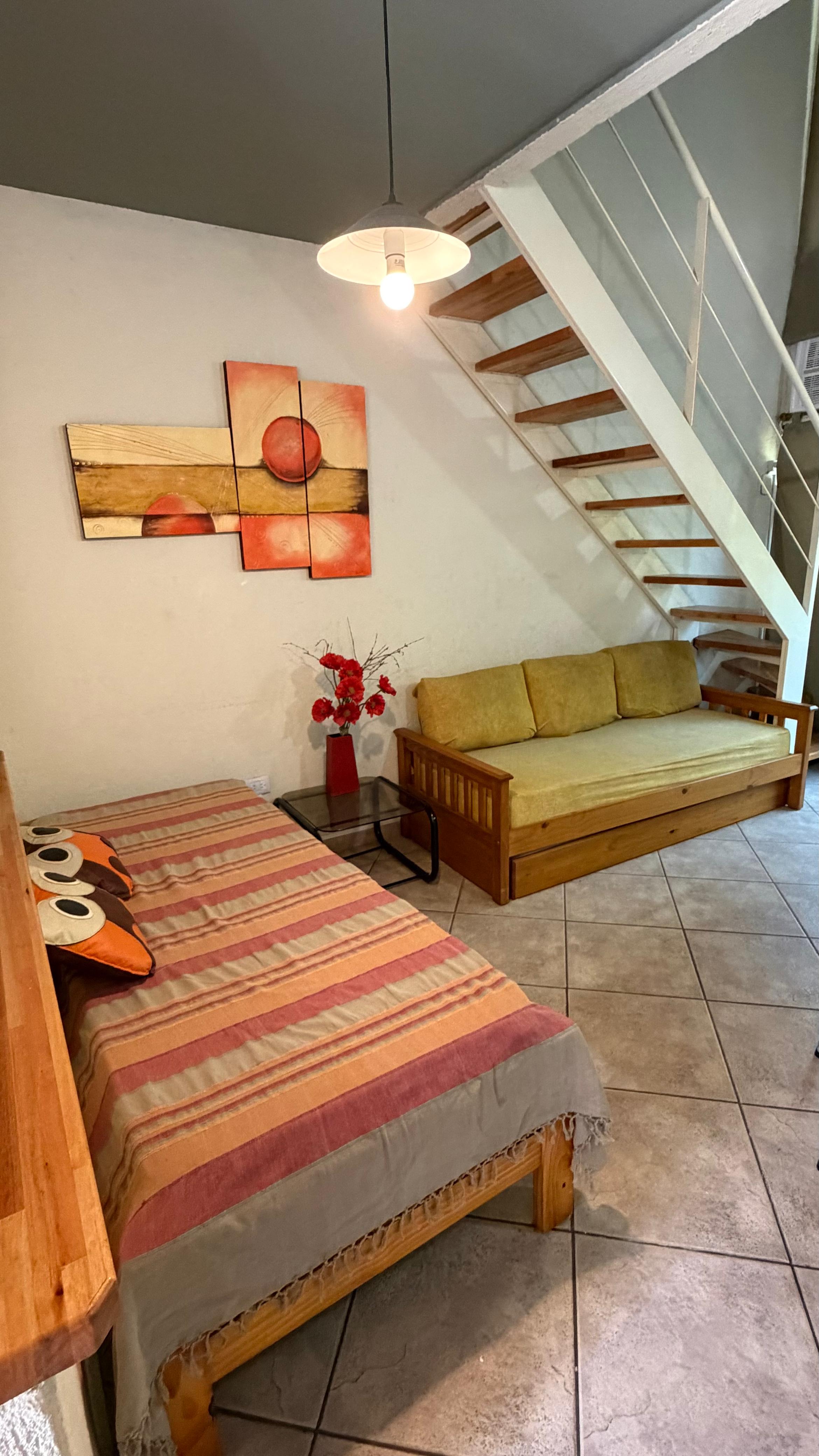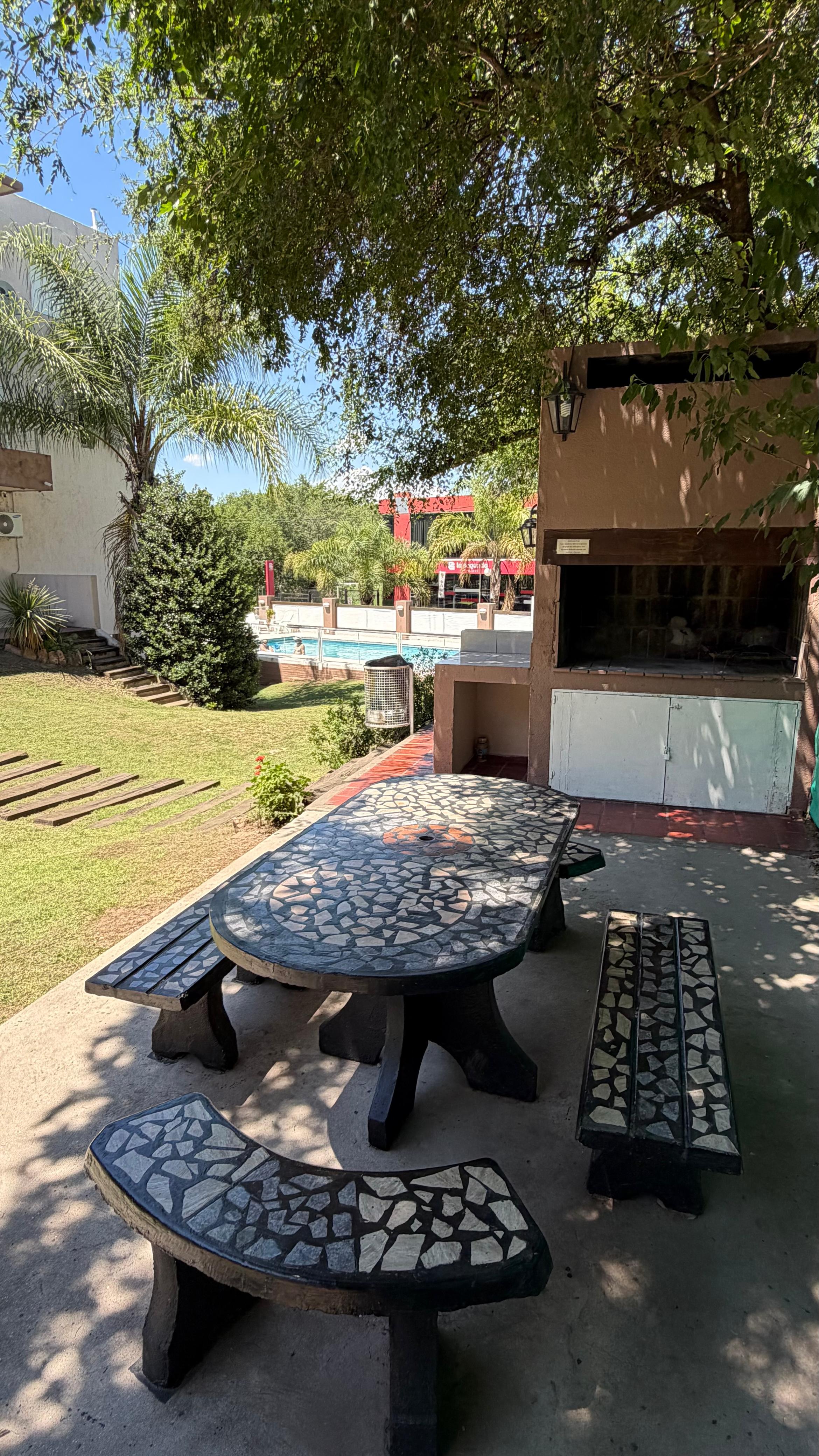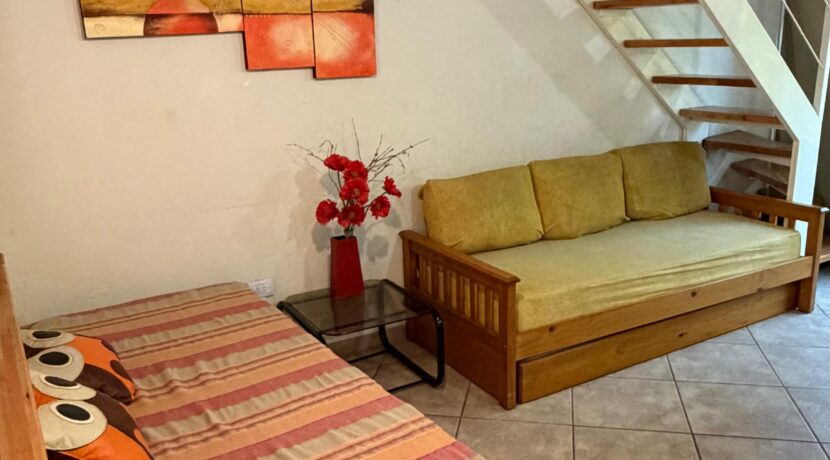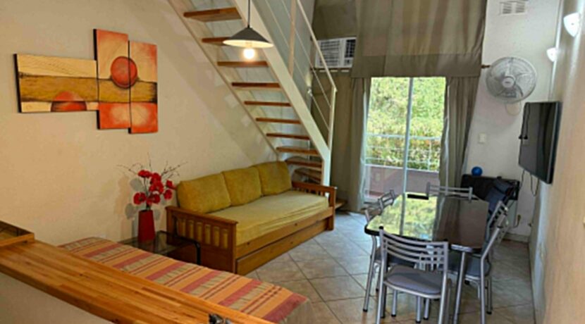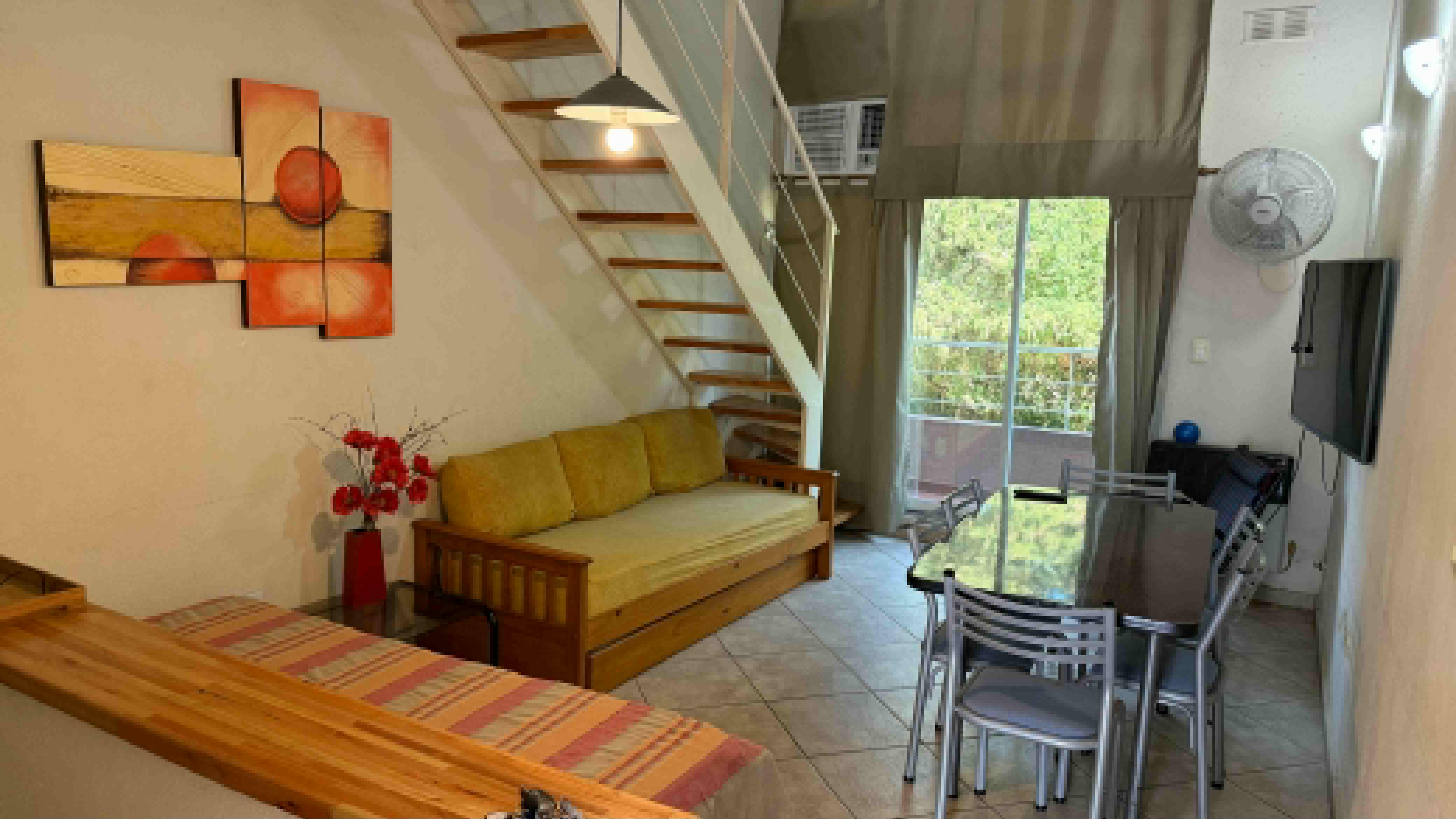 DESCRIPCION: DEPARTAMENTO TIPO DUPLEX DE 1 DORMITORIO (SOMIER DE 2 PLAZAS – CAMA DE 1 PLAZA – CAMA MARINERA EN EL LIVING – 1 BAÑO – LIVING/COMEDOR/COCINA – BALCON – COCHERA PARA 1 AUTO –AMENITIES: PILETA – ASADORES EN EL EXTERIOR – QUINCHO – PARQUE –
